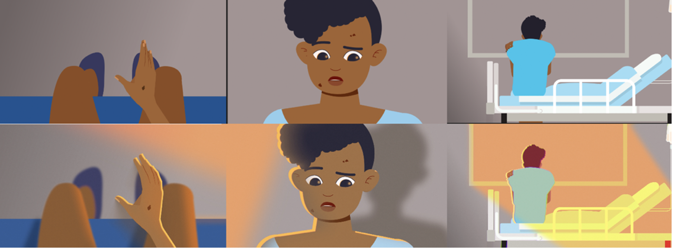 My aim was to create a short promotional video for skin cancer screening, using character-driven sequences, to communicate the emotional weight of a diagnosis while maintaining feasibility within a single-day build.